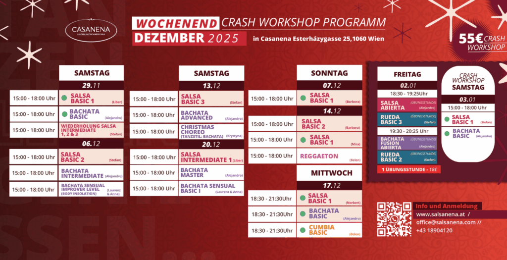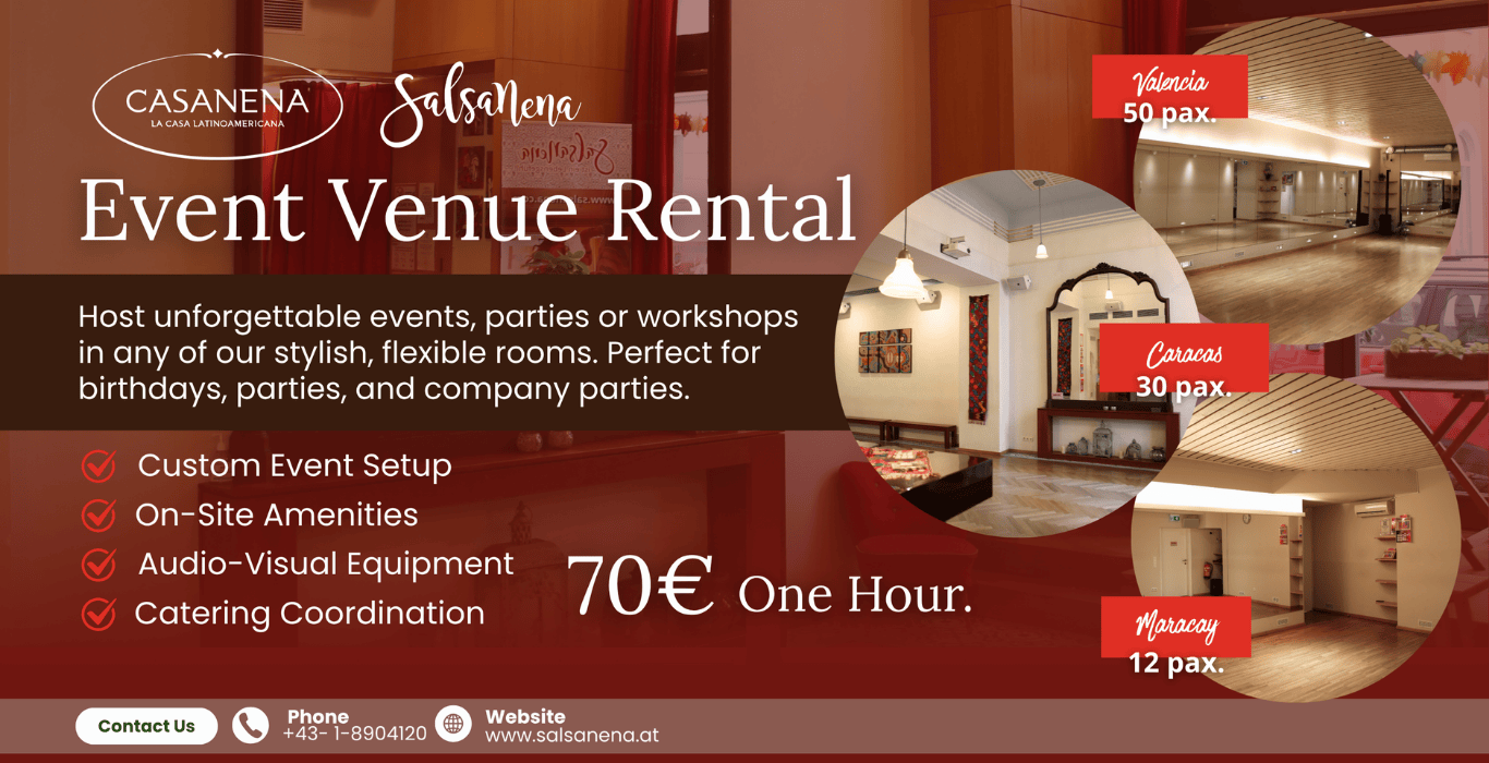Unsere Tanzstudio in Wien ist der beste Ort, um lateinamerikanische Tänze zu lernen. Egal, ob Du Salsa, Rueda de Casino oder Bachata lernen möchtest, bei uns findest du den perfekten Kurs für dein Level. Tanz Dich fit, sozialisiere und entdecke die Welt der lateinamerikanischen Tänze!